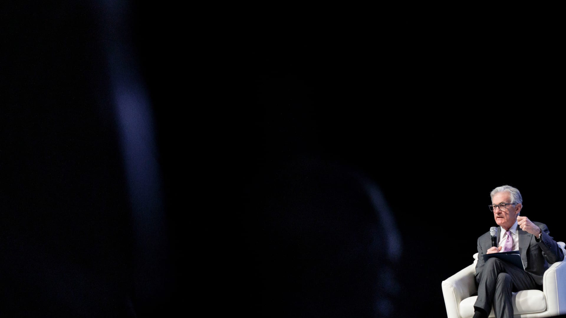 Jerome Powell, predseda Federálneho rezervného systému USA, vo štvrtok 14. novembra 2024 v Music Hall vo Fair Park v Dallase, Texas, USA.